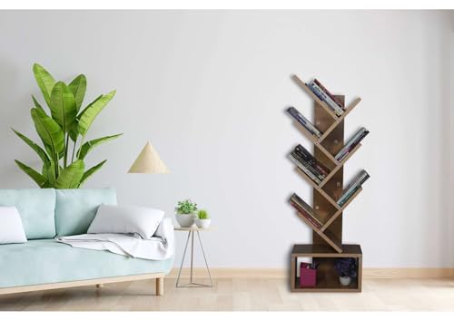 SBF Furniture - رف كتب خشبي على شكل شجرة بسبع طبقات لغرفة الدراسة، حامل كتب خشبي مع مساحة تخزين الرف، مناسب للمكتب وغرفة المعيشة أو غرفة النوم من اس بي اف فيرنتشر، أصفر، DIY (Do-it-Yourself)