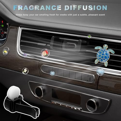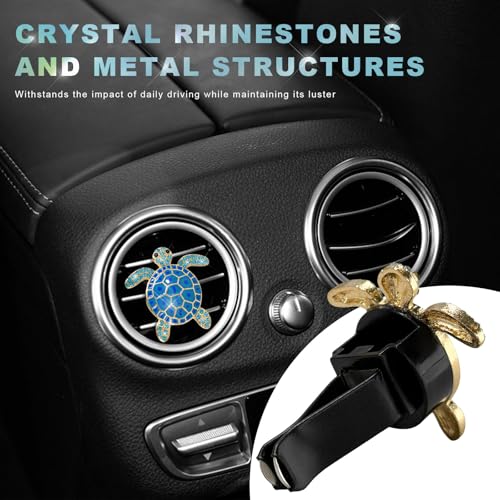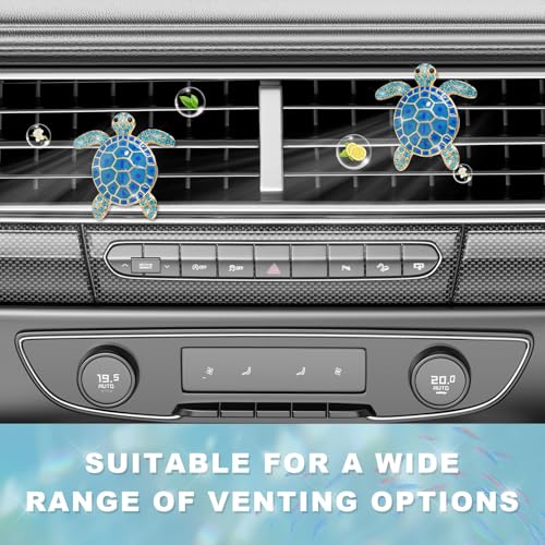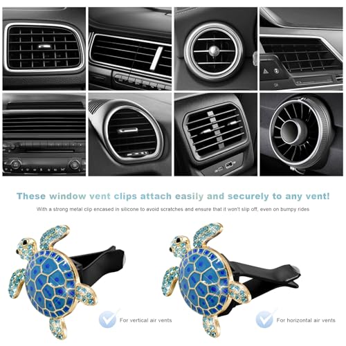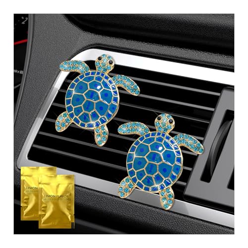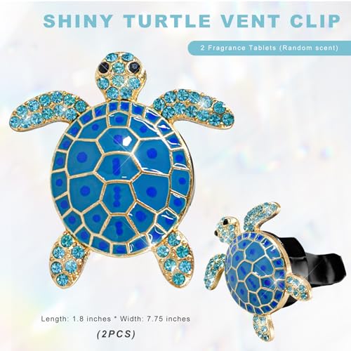 Sbulhia - قطعتان من مشابك تهوية السيارة بتصميم سلحفاة لامعة من سبلهيا، مشبك فتحة تهوية على شكل سلحفاة من حجر الراين مع قرصين معطرين، مشبك منفذ مكيف الهواء بطابع المحيط، ديكور داخلي للسيارة للنساء والفتيات (ازرق