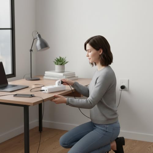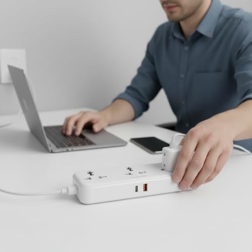 - المشترك مناسب للاستخدام خلف الكنب، خلف المكاتب، أو بجانب السرير لتشغيل وشحن عدة أجهزة في وقت واحد.