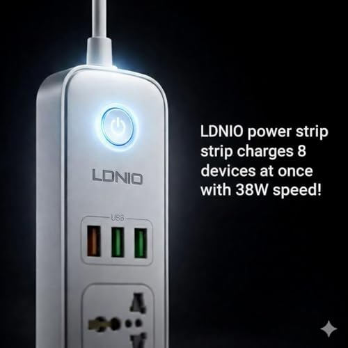 Generic - SC5319 Smart Power Strip 5 Sockets and 3 USB Ports - 38W Fast Charging - 2M Cord - Integrated Protection for Home and Office
