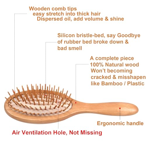 - Are you still using a hair brush made from bamboo or plastic? choose us and give it off. Our hair brush is made of full wood piece with painted handle, it will not break and will not tarnish or crack like bamboo or plastic hair brush. Choose a healthy gift for your hair, 100% natural wood hair brush. Our durable and good brushes will meet your every need, and can conceal with the quality of other brushes
