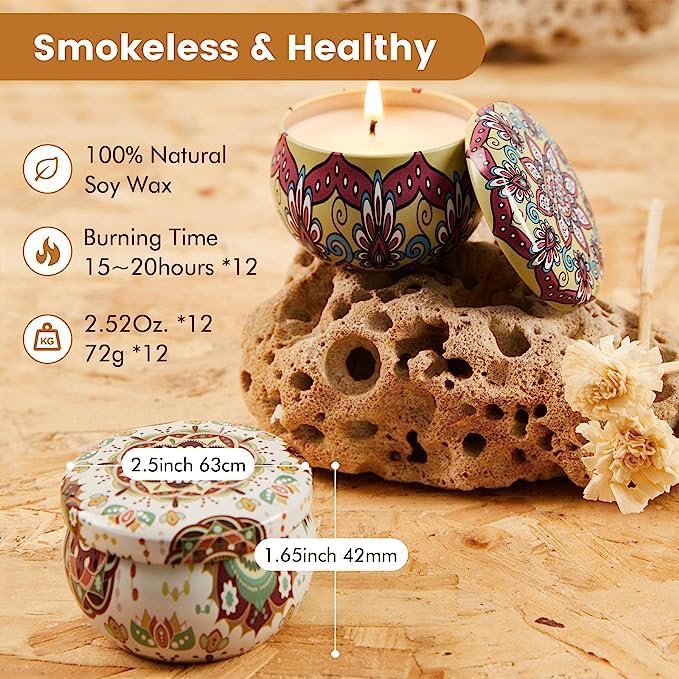 - 【Keep Your Home smells good】 — Each of these beautiful tin candles burns for approximately 15~20 hours. Burning a candle at home is an extremely simple way to diffuse an agreeable fragrance in your house or flat and to feel good. The scent of your