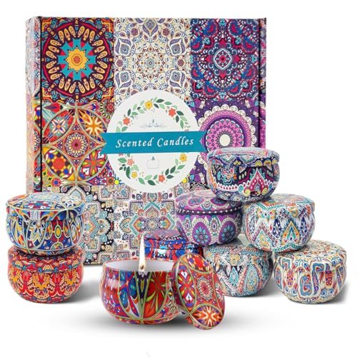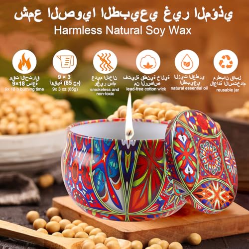 Cestbella - Scented Candles Gift Set Aromatherapy Candle Smokeless with Natural Soy Wax, 9pcs Portable Relaxing Travel Tin Candle Various Fragrances Jar Candles for Bath Yoga Sleep Festival Wedding Party Gifts