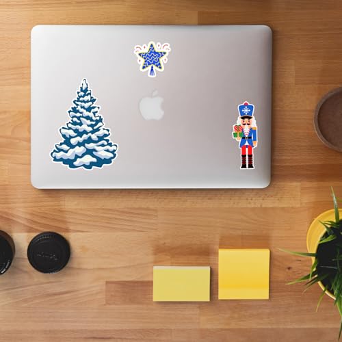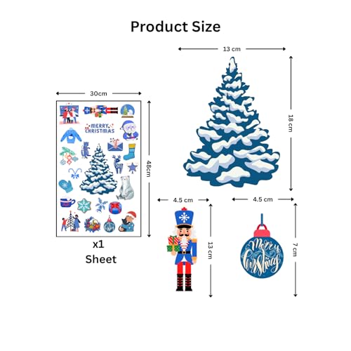 Scentiment - ملصقات جدارية للكريسماس من سنتيمنت، ملصقات مقاومة للمياه مع سانتا وشجرة وشخصيات لطيفة، ملصقات ديكور للنوافذ والحوائط قابلة للإزالة لغرف الأطفال وغرف المعيشة والحفلات، 24 قطعة، لون أزرق