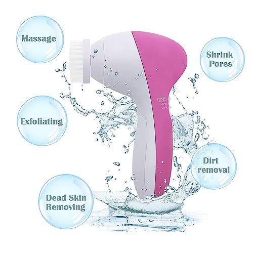Scholazs - 5 in 1 Face Facial Exfoliator Electric Massage Machine Care Cleanser Massager Kit For Smoothing Body Beauty Skin Cleaner Facial Massager Machine for Women- Multicolor