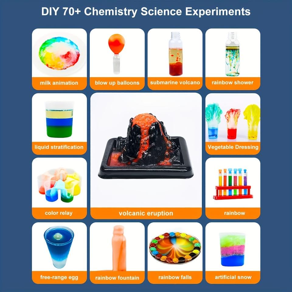 مجموعة معمل العلوم للأطفال، طقم تجارب كيميائية مع نظارات واقية وأنابيب اختبار وبركان، أكثر من 30 قطعة، للأطفال من عمر 6 سنوات فما فوق