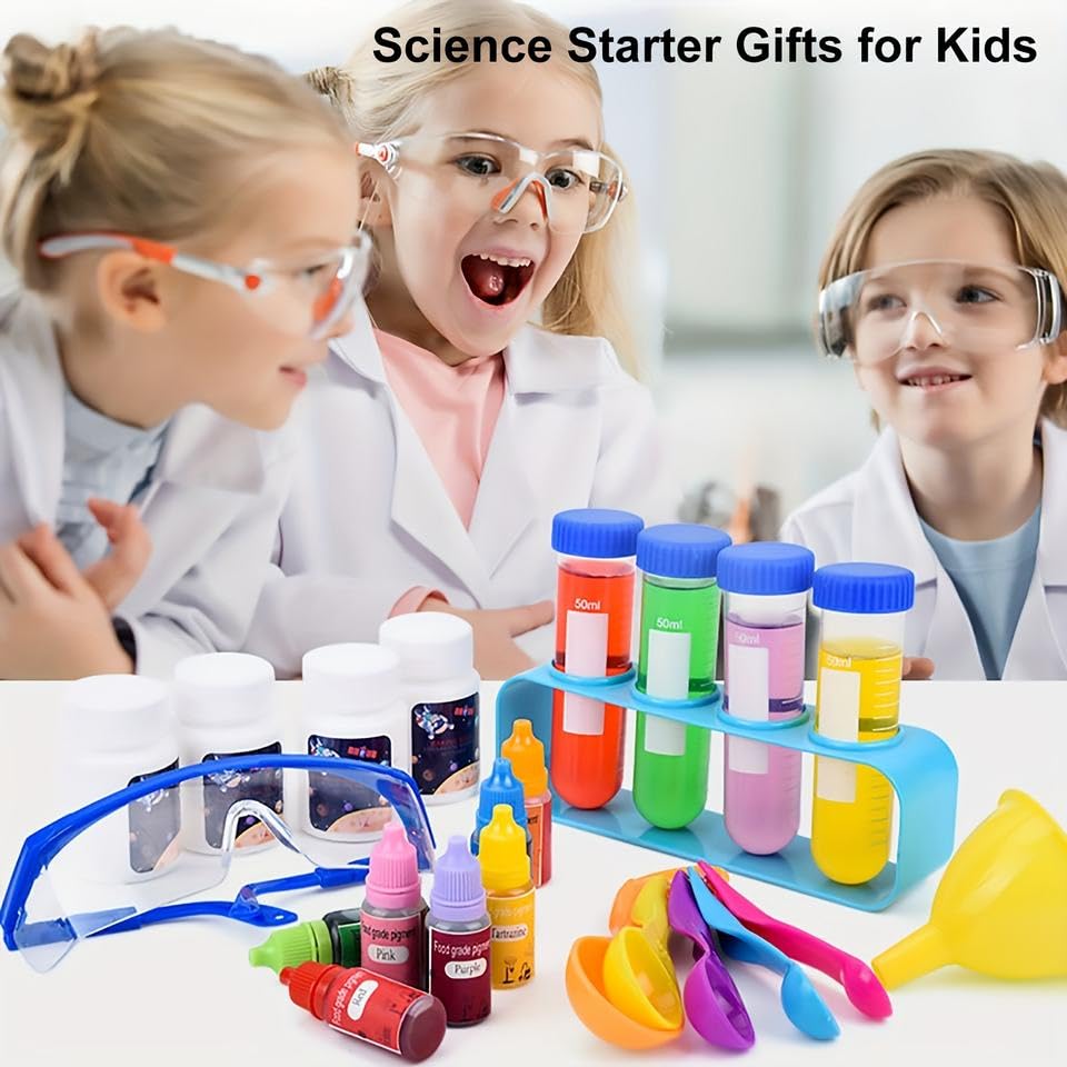 - آمن وتعليمي: مصمم خصيصاً للأطفال مع نظارات واقية وأدوات آمنة لتشجيع التعلم العملي واكتشاف مبادئ العلوم والكيمياء بطريقة ممتعة وآمنة