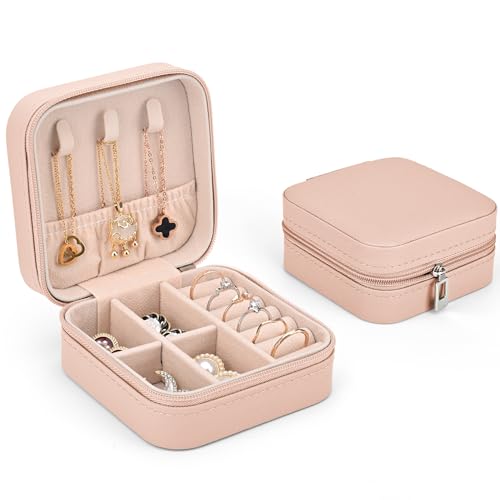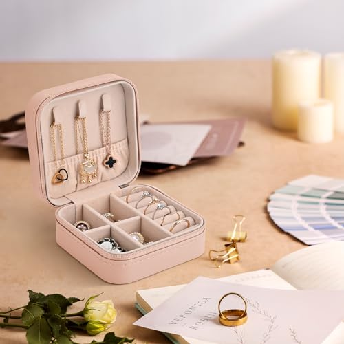 Sciphylia - Sciphylia Jewellery Box for Women Girls Small PU Leather Jewellery Box Travel Jewellery Storage with Velvet Lining for Rings Earrings Bracelets Necklaces Christmas Birthday Pink