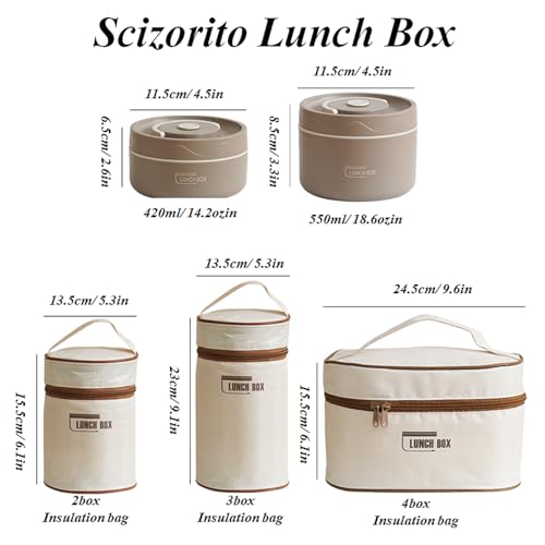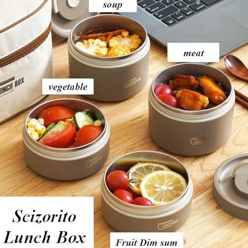 Scizorito - صندوق غداء / علبة وجبات خفيفة من الفولاذ المقاوم للصدأ مقاوم للتسرب ومعزول بتفريغ الهواء من ثلاث طبقات (مع شنطة عازلة)، مناسب لحمل الطعام إلى المكتب والنزهات من سكيزدوريتو أبيض، 1 كجم