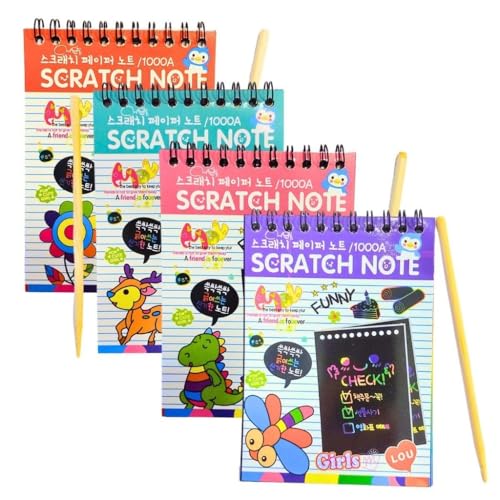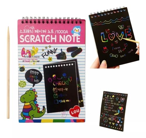 - COMBO SET INCLUDES - Each set of Magic Scratch Art paper notes including 10 scratch art notebooks, 10 wooden styluses. Each notebook has 8 sheets of eraser paper, measuring 20cm x 14cm.