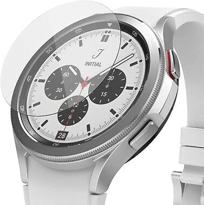 ELMO3EZZ - شاشة حماية مع حواف مقعرة ثلاثية الأبعاد بأطراف ناعمة لساعة سامسونج جالاكسي 4 كلاسيك، مضادة للخدوش وخالية من الفقاعات ومقاومة للكسر وعالية الحساسية (من زجاج غير مقوى)