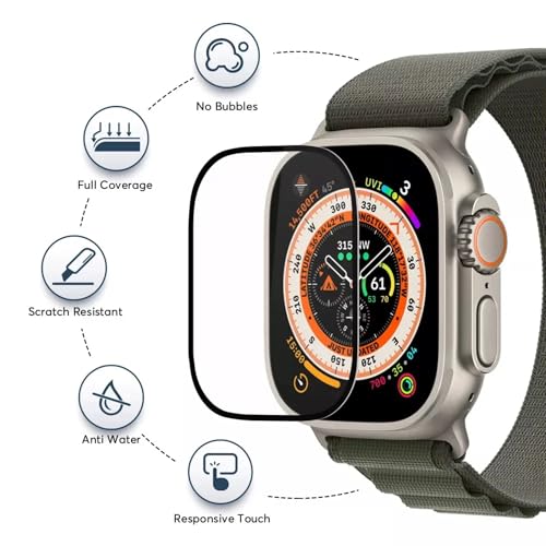 - ملاءمة مثالية: تم تصميمه بدقة لتوفير مقاس ممتاز وتغطية كاملة لساعة ابل الترا 1/2 وموديلات الساعات الذكية المتوافقة، مما يضمن حماية كاملة من الحافة إلى الحافة