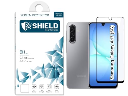 SHIELD More than fence - واقي شاشة لموبايل سامسونج جالاكسي A 17 اصلي من (شيلد) 9D زجاج ماسي من الزجاج المقوى أقوى تغطية كاملة على الإطلاق، وضوح 4K، دعم بصمات الأصابع فائق السرعة وسهل التركيب
