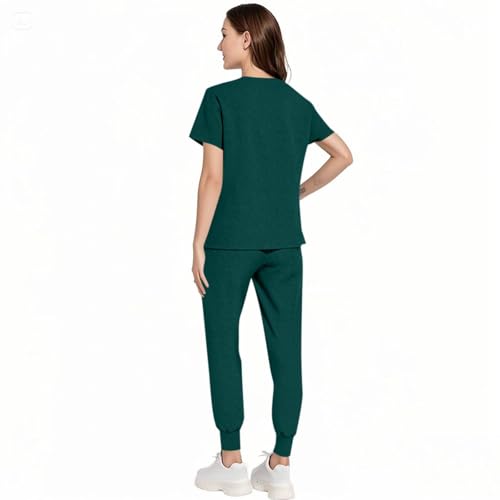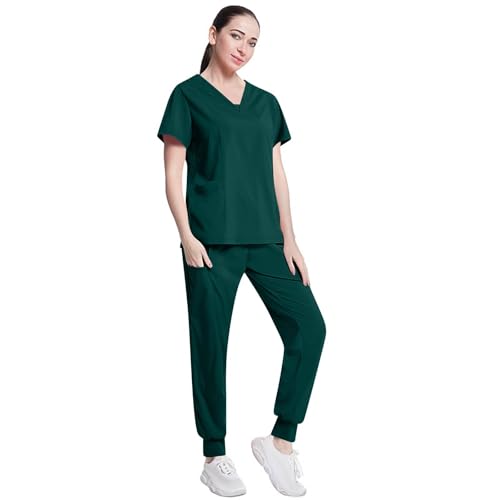 Topassion - Scrubs Uniforms Women Set, Women's Medical Uniform Set 2 Piece Classic V-Neck Tunic Top & Yoga Jogger Pants Ladies Workwear Outfit Professional Nurse Aesthetic Blouse+Trouser