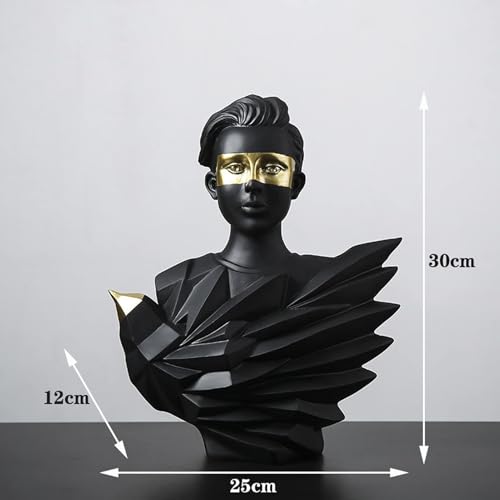 - The sculpture is available in designs representing both a man and a woman, allowing for personal expression or thematic decor. The men's statue measures L 25cm, W 12cm, H 30cm, while the woman's statue is slightly larger at L 25.5 cm, W 12 cm, H 30 cm. Additionally, a feather sculpture bust spanning L 17 cm, W 14 cm, H 42 cm offers a unique alternative for those looking to add additional variety to their decor. This sizing ensures that they can fit easily into various spaces without overwhelming