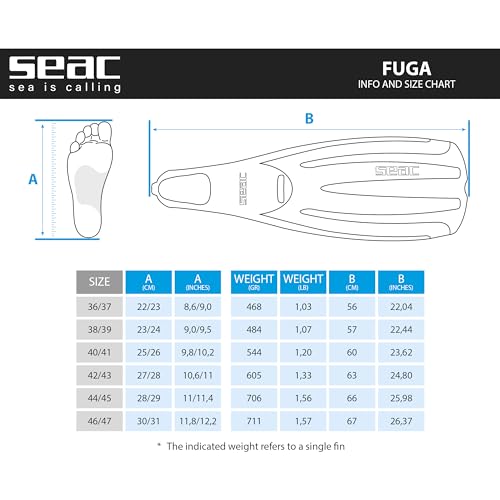 SEAC - زعانف فوجا للجنسين للغوص والغطس وكتم النفس تحت سطح البحر مع فتحة للقدم، للكبار، صنعت في ايطاليا
