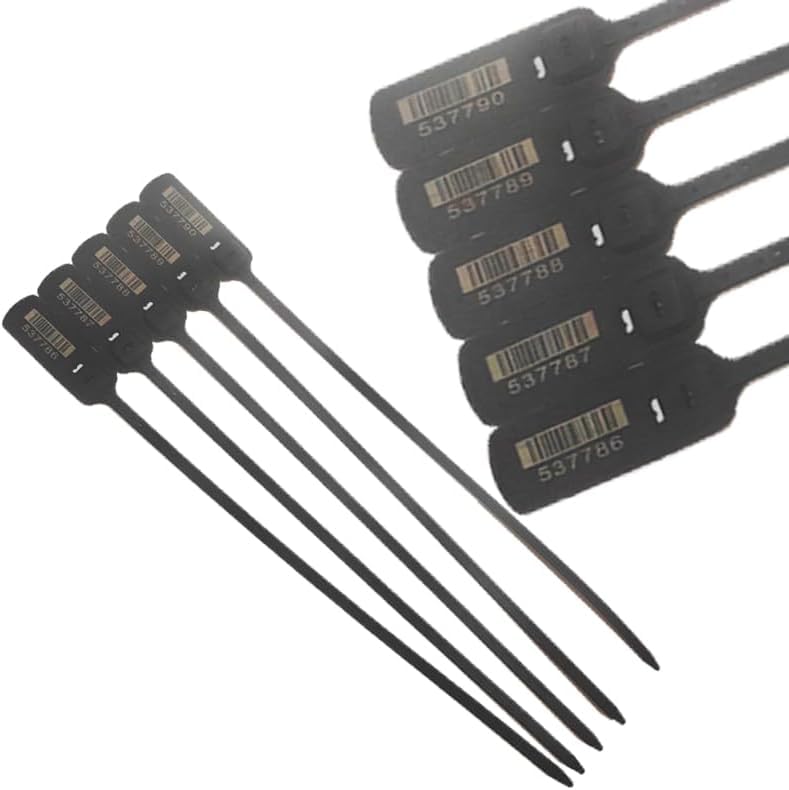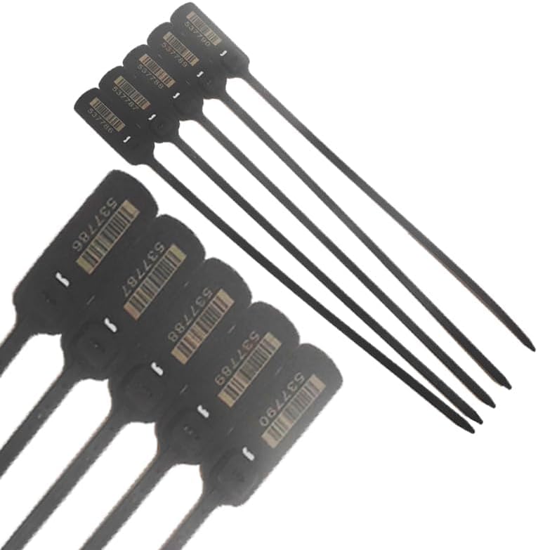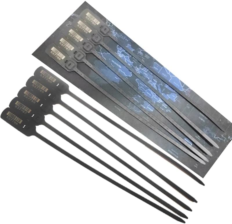 - Double lock point guidelines for extra safety, heavy-duty numbered safety bands, tamper-resistant plastic ties with wire tie, luggage transport logistics safety label