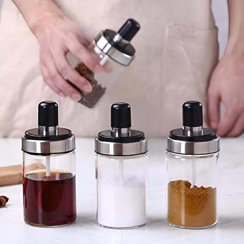 Generic - Seasoning Jar - Stylish Glass Storage with Spoon for Salt, Spices, Honey, Sugar, and Ghee, Essential for Every Kitchen