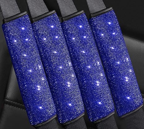 Generic - Seat Belt Shoulder Pads, Bling Crystal Car Seat Belt Covers, Car Accessories for Women (Blue) - 4 Pack - SACAR