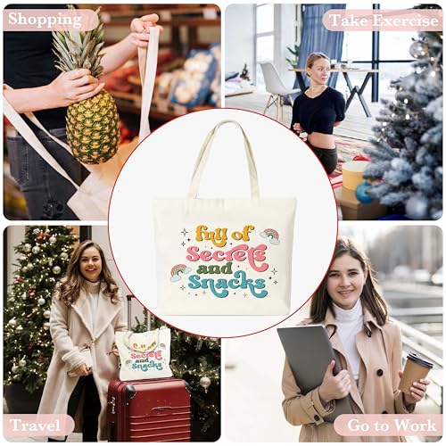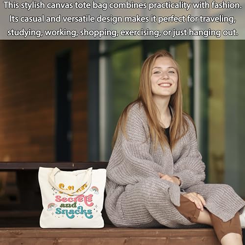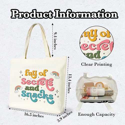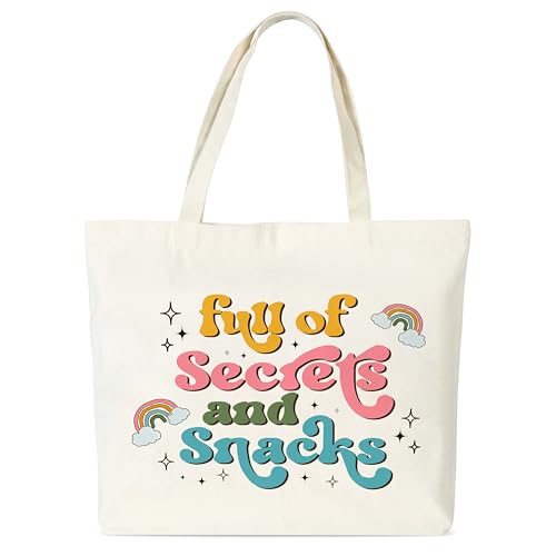 seclate - Rainbow Canvas Tote Bag, Full of Secrets and Snacks Tote Bags for Women, Aesthetic Reusable Cloth Cotton Bags for Travel Shopping Beach - N18, Multicolor, Large