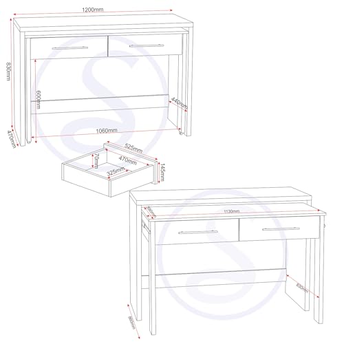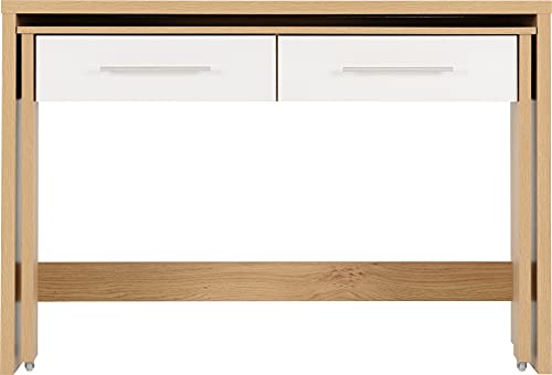Seconique - Seconique Seville 2 Drawer Slider Desk White Gloss/Light Oak Effect Veneer, W 120cm x D 47-86cm x H 77-83cm