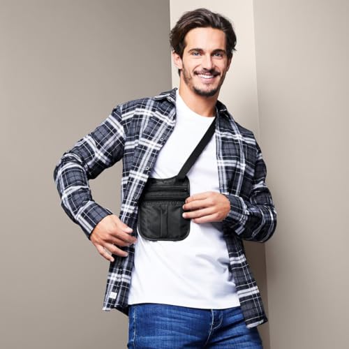 Generic - Security Bag, Black, Lightweight Travel Pouch with Zippered Compartments and Adjustable Strap, Ideal for Men, Size 15.5 x 20 cm