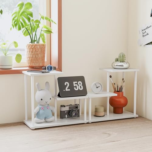 Sedegn - Wood Desktop Shelf, Desktop Organizer Shelf, Freestanding Small Bookshelf Desk Supplies Organizers, 3 Tier Display Rack Office Decor (White)