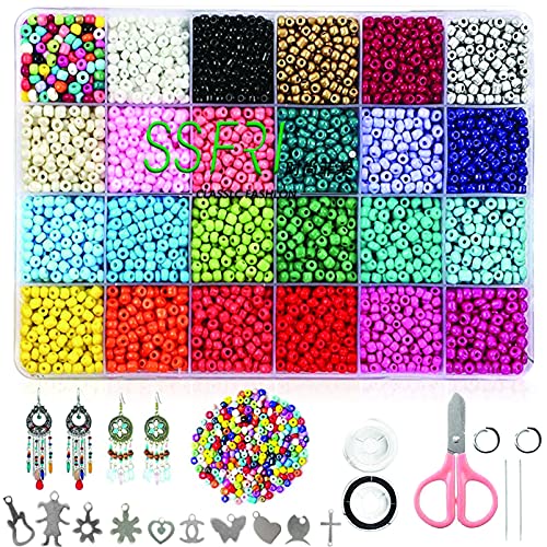 Xizheng - Seed Beads 14400 Packs 2mm Glass Bracelet Jewelry Making Kit for DIY Earrings Necklaces with 24 Multicolored Seed Beads Open Jump Rings 10 Jewelry Accessory pendant Scissors Elastic String Art Crafts