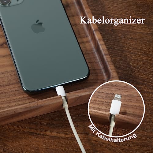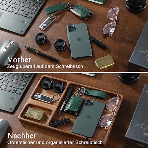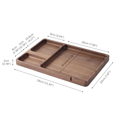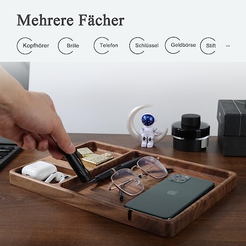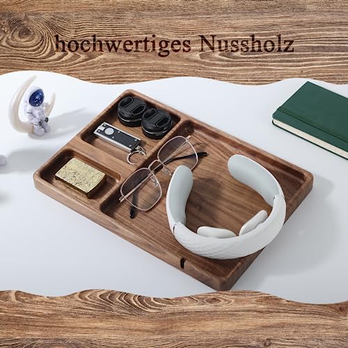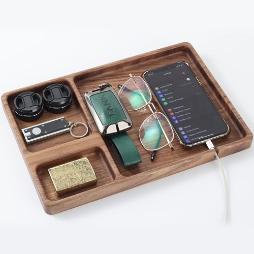 SEEDWAVE - صينية تخزين خشبية منظمة لجانب السرير من سيد ويف فاليه للرجال خشب الجوز للمفاتيح والموبايل والمجوهرات والساعات والاكسسوارات مستطيلي