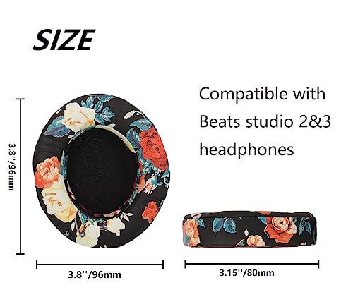 SEEFY - SEEFY Replacement Ear Cushion Pads Cover Compatible with Beats Studio 2.0 Wireless/Wired and Studio 3.0 Over Ear Headphones-1 Pair (Floral Black)