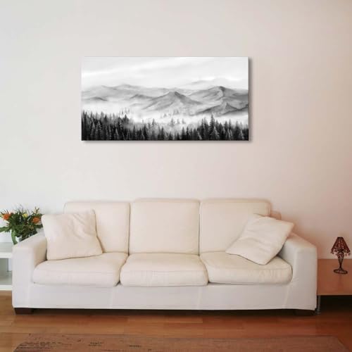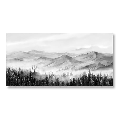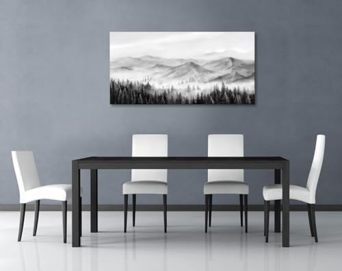 Seekland Art - Seekland Art Foggy Forest Canvas Wall Black and White Landscape Painting Misty Mountain Nature Scenery Picture work Modern Office Home Bedroom Living Room Decor