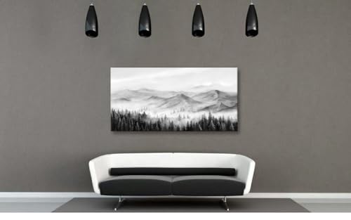 - ▲〈UNIQUE LANDSCAPE PAINTING〉: This black and white foggy forest landscape canvas painting is original created by our artist. The unique mountain nature wall art is printed in high definition on premium water-proof canvas.