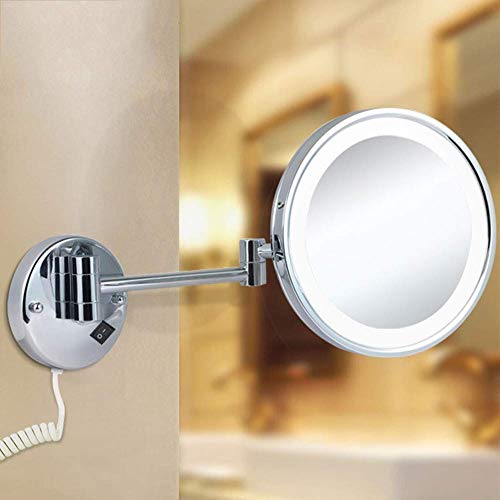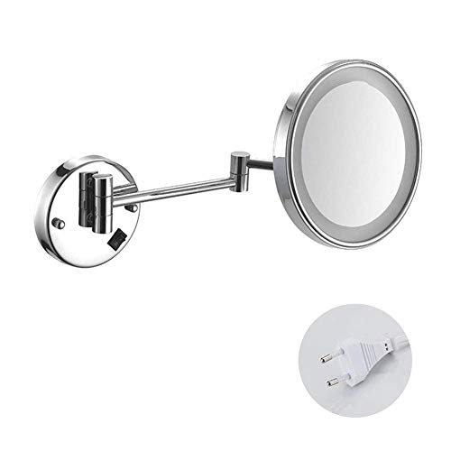 SEESEE.U - Makeup Mirror With LED Light Shaving Mirror Wall Mounted 3X Magnification Extendable And Chrome Finished With Drilling/Without Drilling Single Side Round 8 in(Color :Exposed plug)
