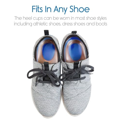 - The comfortable gel heel cups can be worn in most shoe styles, including athletic shoes, dress shoes and boots, with or without socks.