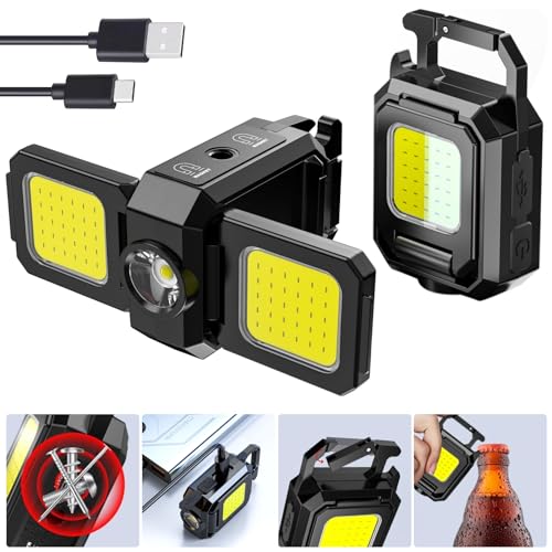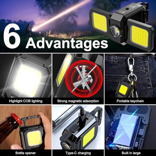 - 【Double Sides Cob Foldable Design-90 Degree】The unique design of this keychain light makes it more convenient to use, this cob work light sides have 2 cob light can foldable or open to use. When using, you can turn it on in the same direction to focus the light source and hang it up for maximum brightness, which durable and practical,so can be used with confidence.