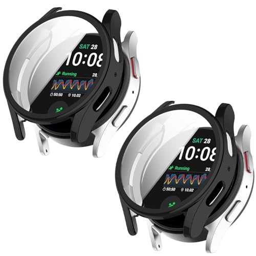 SEIAIYG - Case for Samsung Galaxy Watch 7 44 mm, [2 Pieces] Ultra Thin TPU Shockproof Protective Case Cover for Samsung Galaxy Watch 7 44 mm - Black+Black