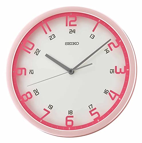 Seiko - ساعة حائط بعقرب ثواني هادئ من سيكو، موديل QXA789P، تناظري، بولي كربونات (PC)، أبيض وزهري