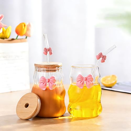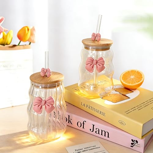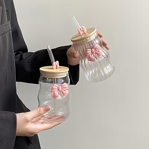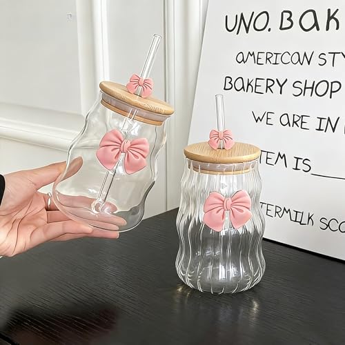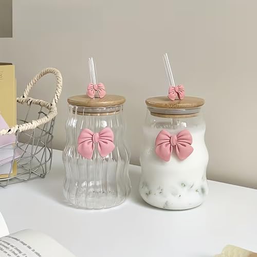 - 【Cute Bow Glass Cups】:These charming glass tumblers (adorned with a sweet pink bow detail)—also practical glass cups with lids and straws—work perfectly for any drink. They double as ideal iced coffee cups for your morning brew, plus fit fruity smoothies, iced teas, and mocktails too. These cute glass cups’ eye-catching design elevates both daily sipping and casual get-togethers.