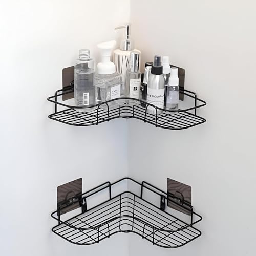 - This self-adhesive, stainless steel corner bathroom storage rack is designed to efficiently organize toiletries without the need for drilling, making installation quick and damage-free.