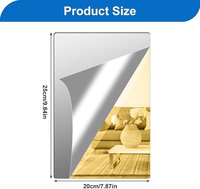 - What You Will Get: 4 piece mirror tiles self-adhesive measuring 20x25cm with thickness of approximately 2mm, as well as a free sticker. You can use your imagination to cut mirror sheets into any shape to decorate the walls