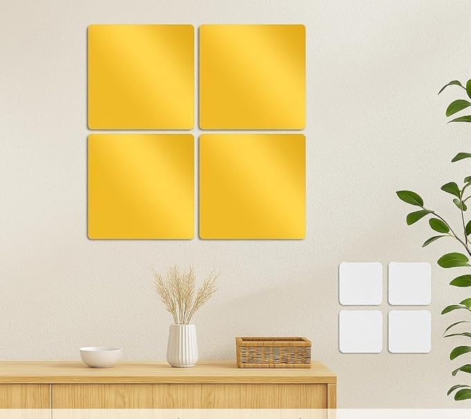 Generic - Self Adhesive Mirror Tiles 4 Pieces 20x25cm (2mm Thick), Acrylic Stick on Mirror Stickers, Flexible Tiles for Wall, Bathroom, Bedroom Gold