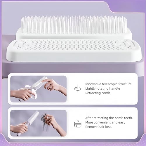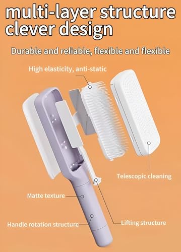- This hairbrush incorporates an automatic cleaning system, eliminating static electricity while gently massaging the scalp. The handle features a rotating mechanism that allows users to easily control the lifting and lowering of the comb's teeth. This thoughtful design guarantees that your detangling experience is clean and effective, preventing any concern about hair debris being left behind while combing. For those who cherish the art of hair grooming, this brush is the perfect tool.