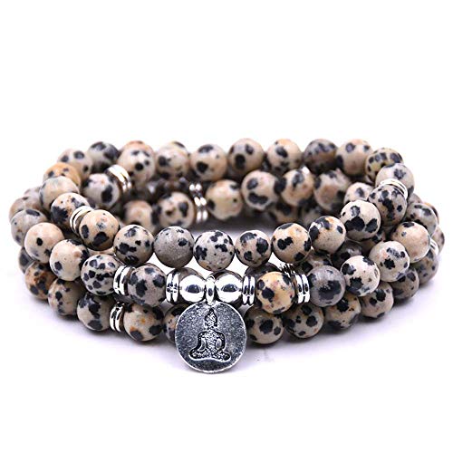 Self-Discovery - Self-Discovery Natural 108 Mala Beads Bracelet Necklace Meditation Jewelry with Yoga Charm (Dalmatian Jasper)