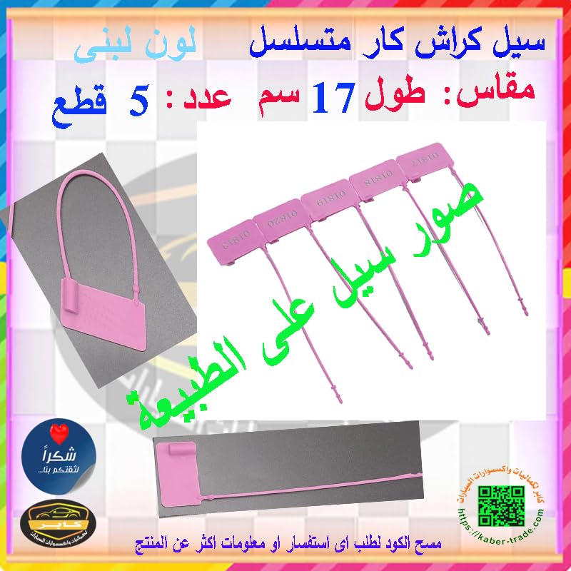 Generic - أربطة الكابلات ذاتية القفل ، سيل كراش سدادات امان ، اربطة مرقمة ومتسلسلة ، تامين الحاويات والمتعلقات(سيل كراش لون بينك ، طول 17سم ، عدد 5 قطع )- من كابر تريد