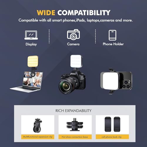 Generic - مصباح سيلفي (M11) بـ64 مصباح LED، اوضاع اضاءة للفيديو، مشبك, قابل لاعادة الشحن على الجوال/اللابتوب/الكاميرا، للمكياج، اليوتيوب، تيك توك، البث المباشر، مدونة الفيديو/الصور/الاجتماعات.