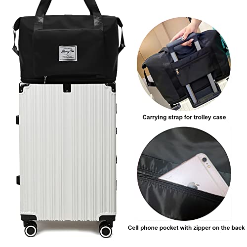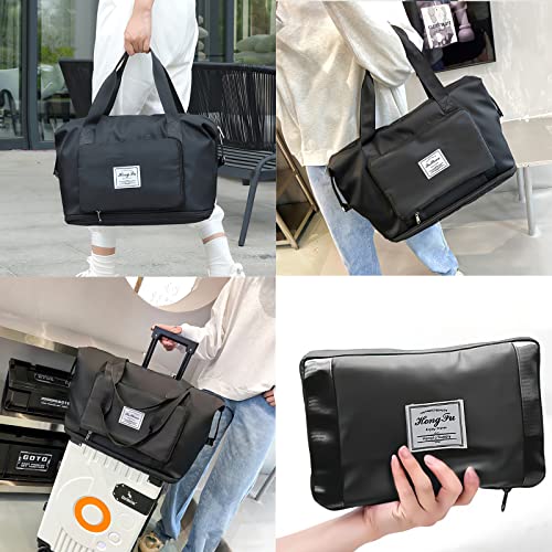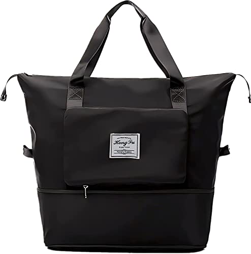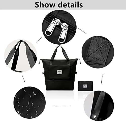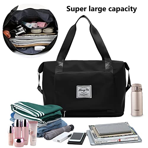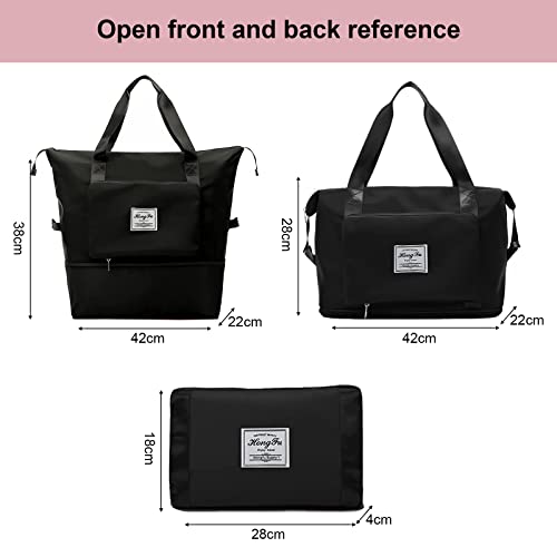Sencangxun - Travel Bags for Women, Overnight Carry-On Weekender Gym Bag, Waterproof Expandable Foldable Travel Bag, Large, Black, Hand Luggage