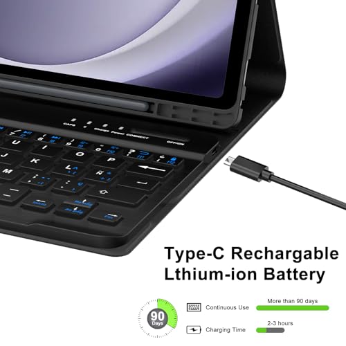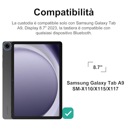 SENGBIRCH - جراب مع لوحة مفاتيح لجهاز سامسونج جالاكسي تاب A9 8.7 بوصة من سنسيبرش (تصميم كويرتز) مع حامل قلم، بلوتوث
