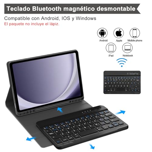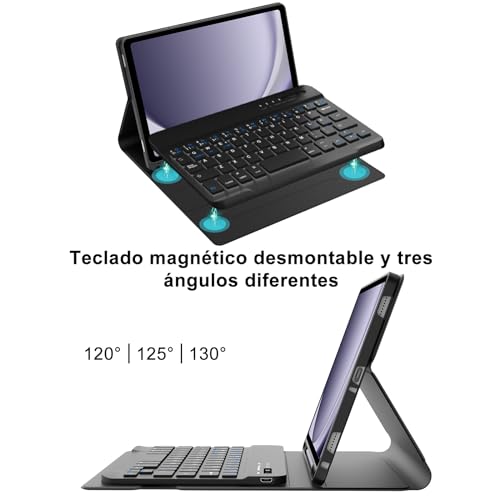 - حافظة سامسونج جالكسي تاب A9 8.7 بوصة مع لوحة مفاتيح: 3 نتوءات داخلية توفر زوايا رؤية مختلفة. يمكنك حتى وضعه بشكل غير رسمي على أريكتك. يحافظ الجلد الداخلي المغناطيسي على امتزاز الكيبورد، مما يضمن الثبات في أي مكان في عطلتك أو رحلة العمل. (القلم غير متضمن.)