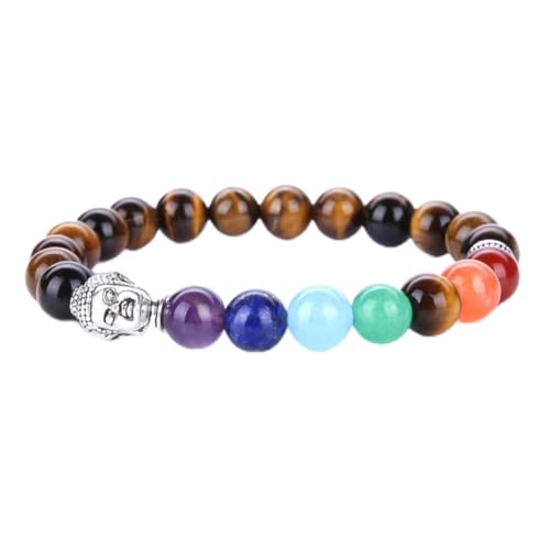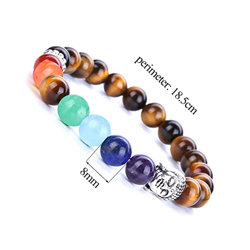 Senidea - 7 Chakra Bracelet (2 Pieces or 1 Piece) Yoga Bracelet Gemstone Bracelets Natural Chakra Stones Lava Stone Healing Reiki Energy Therapy for Men and Women, 18.5 centimeters, Stone