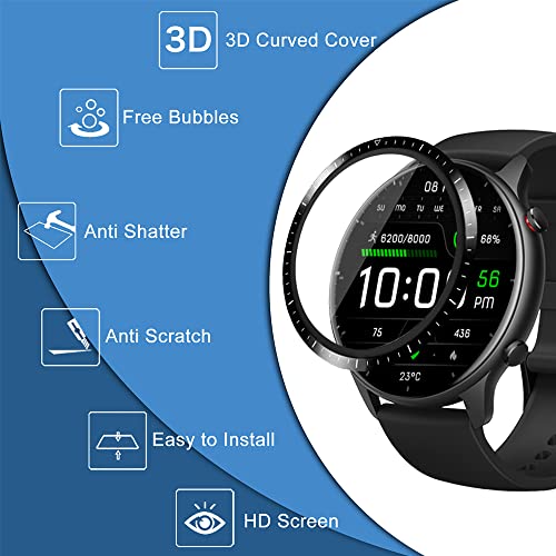 SeNool - Pack of 3 Screen Protectors Compatible with Amazfit GTR 2e Film, 3D Full Coverage Bubble-Free Anti-Scratch Ultra Clear Screen Protector for Amazfit GTR 2e